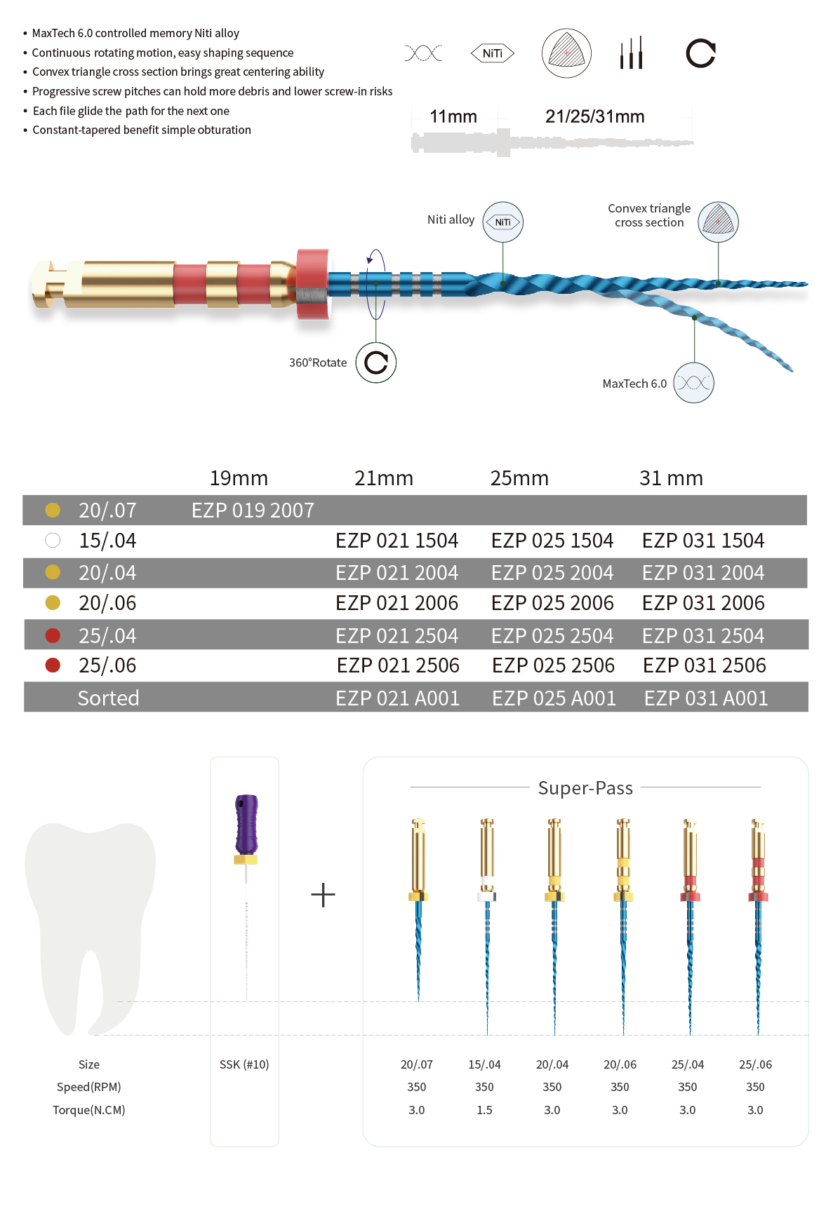 · First the MaxTech 6.0 controlled memory Niti alloy, combined with a continuous rotating motion, provides an easy and efficient shaping. · Second the convex triangular cross-sect